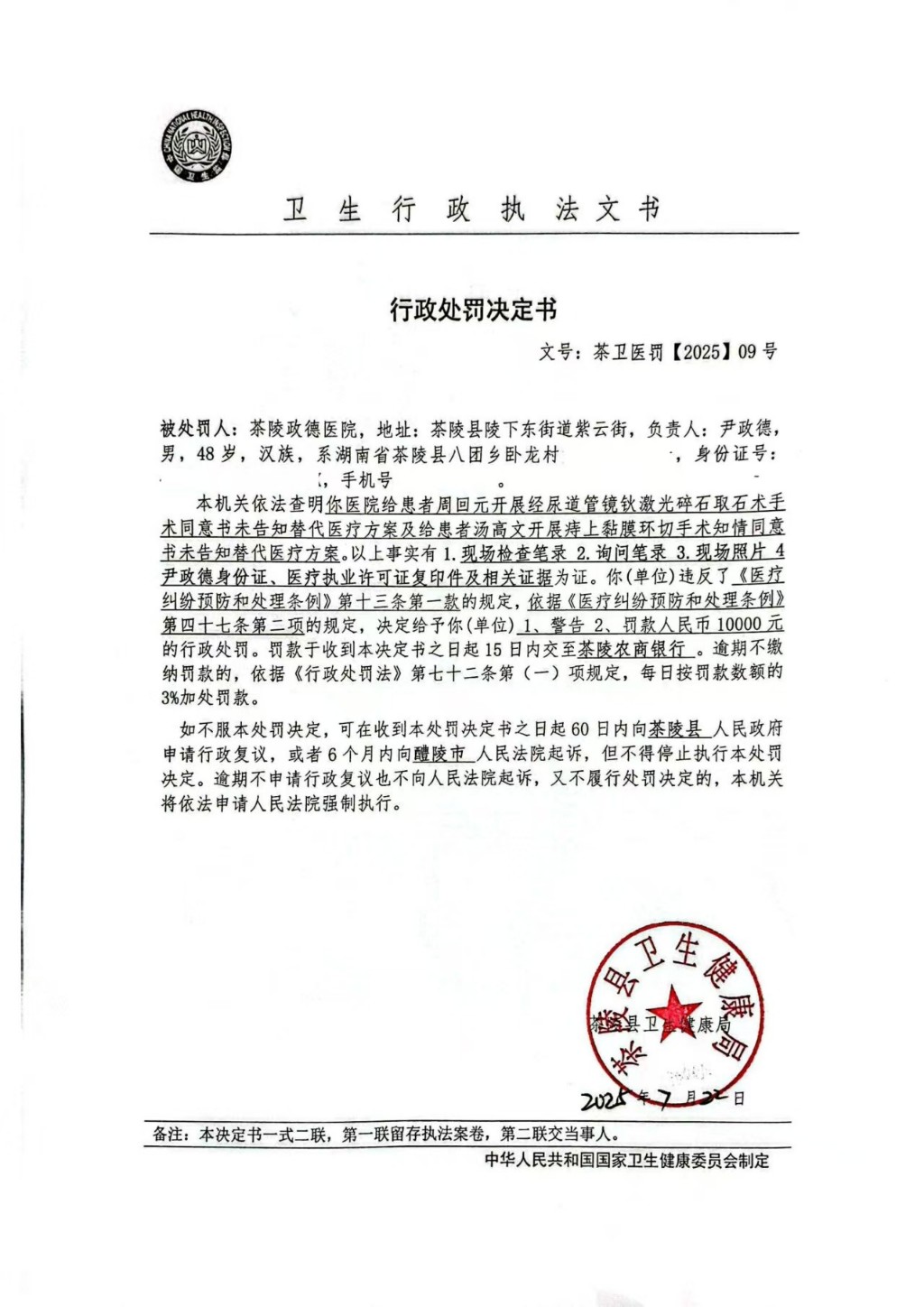 茶卫医罚〔2025〕09号行政处罚决定书公示