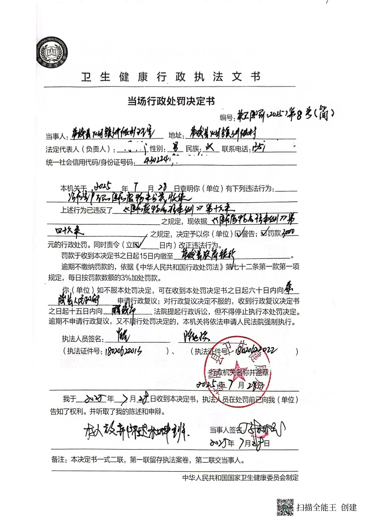 茶卫医罚〔2025〕8号(简)行政处罚决定书