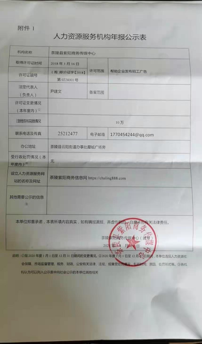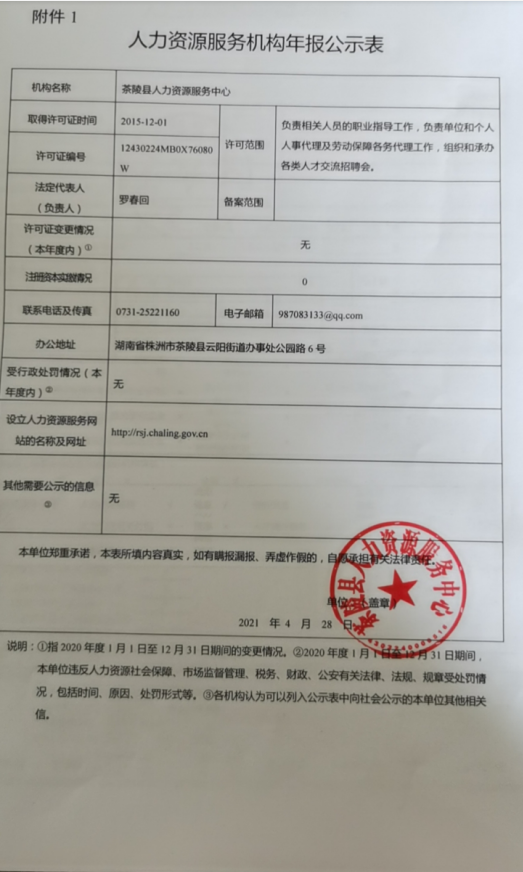 附件:2020年株洲市茶陵县人力资源服务机构年报公示表