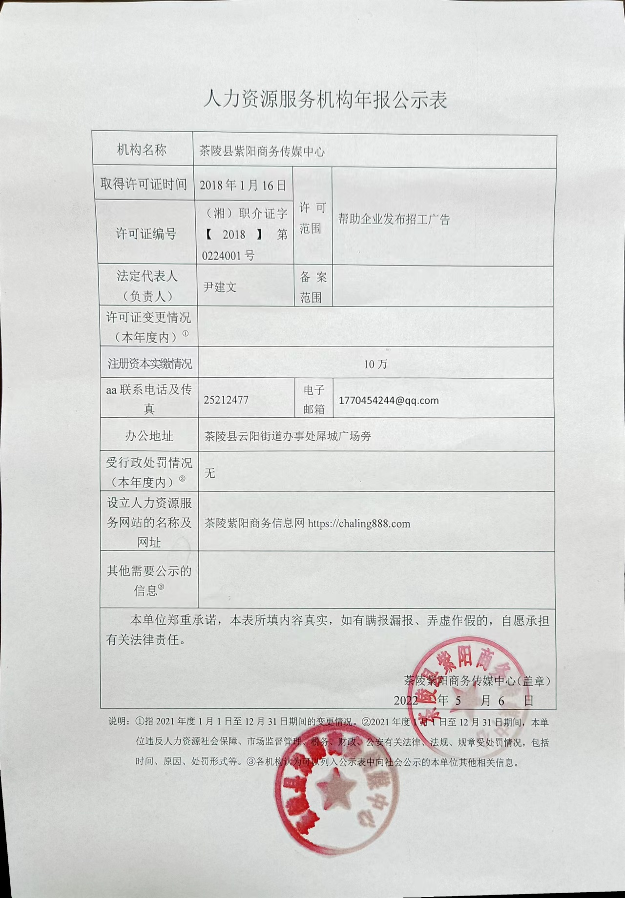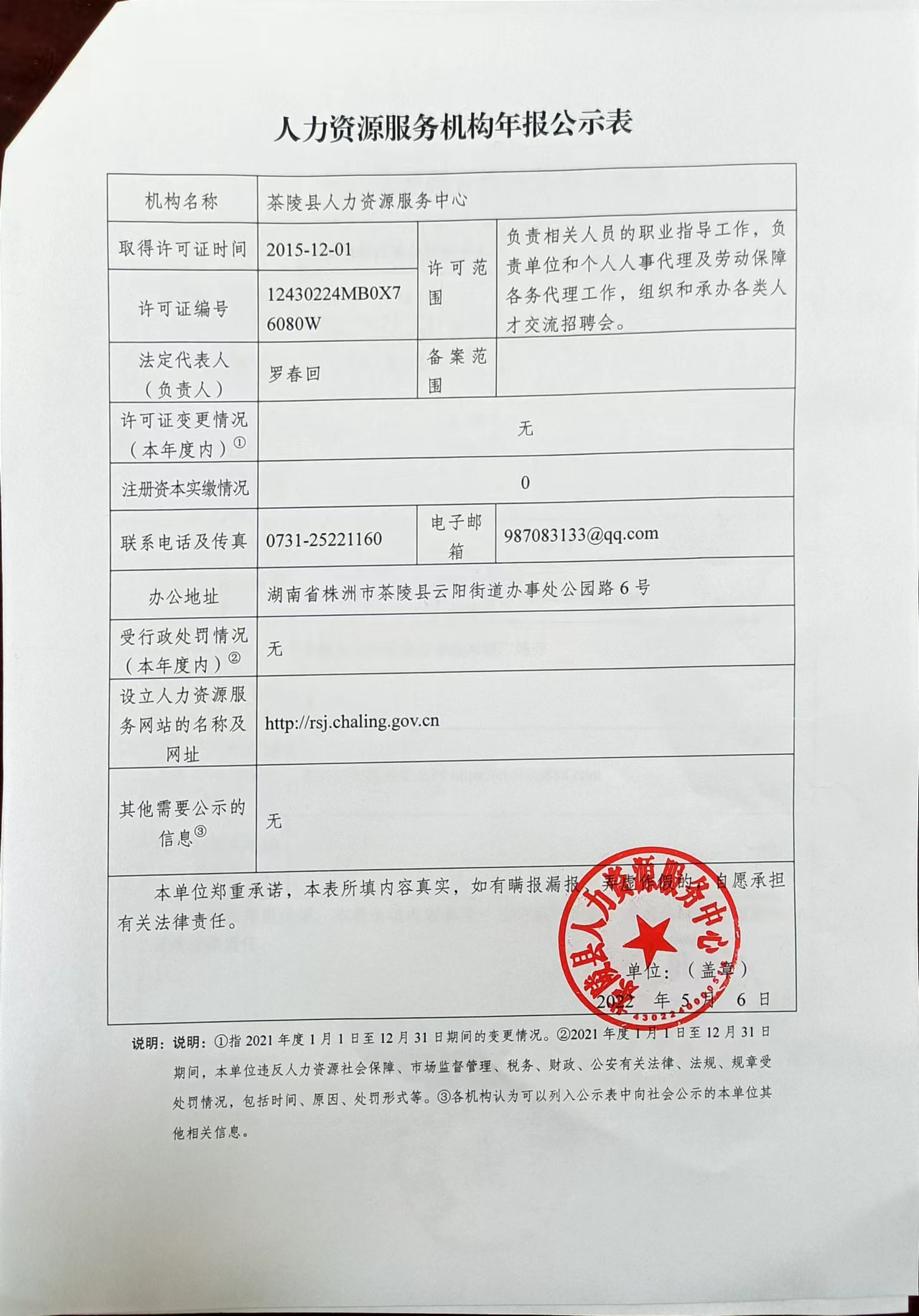 附件:2021年株洲市茶陵县人力资源服务机构年报公示表