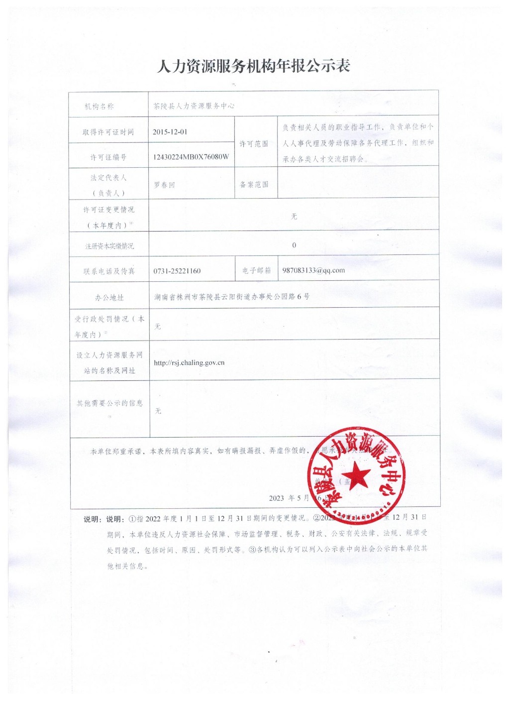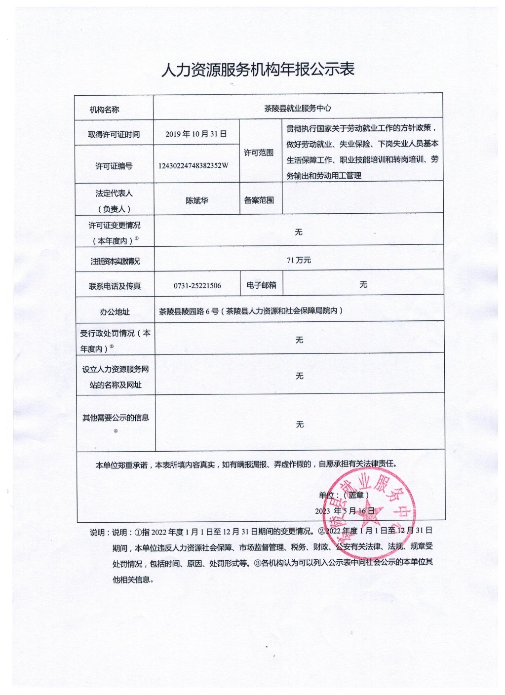 1、人力资源服务机构年报公示表(茶陵县人力资源服务中心)