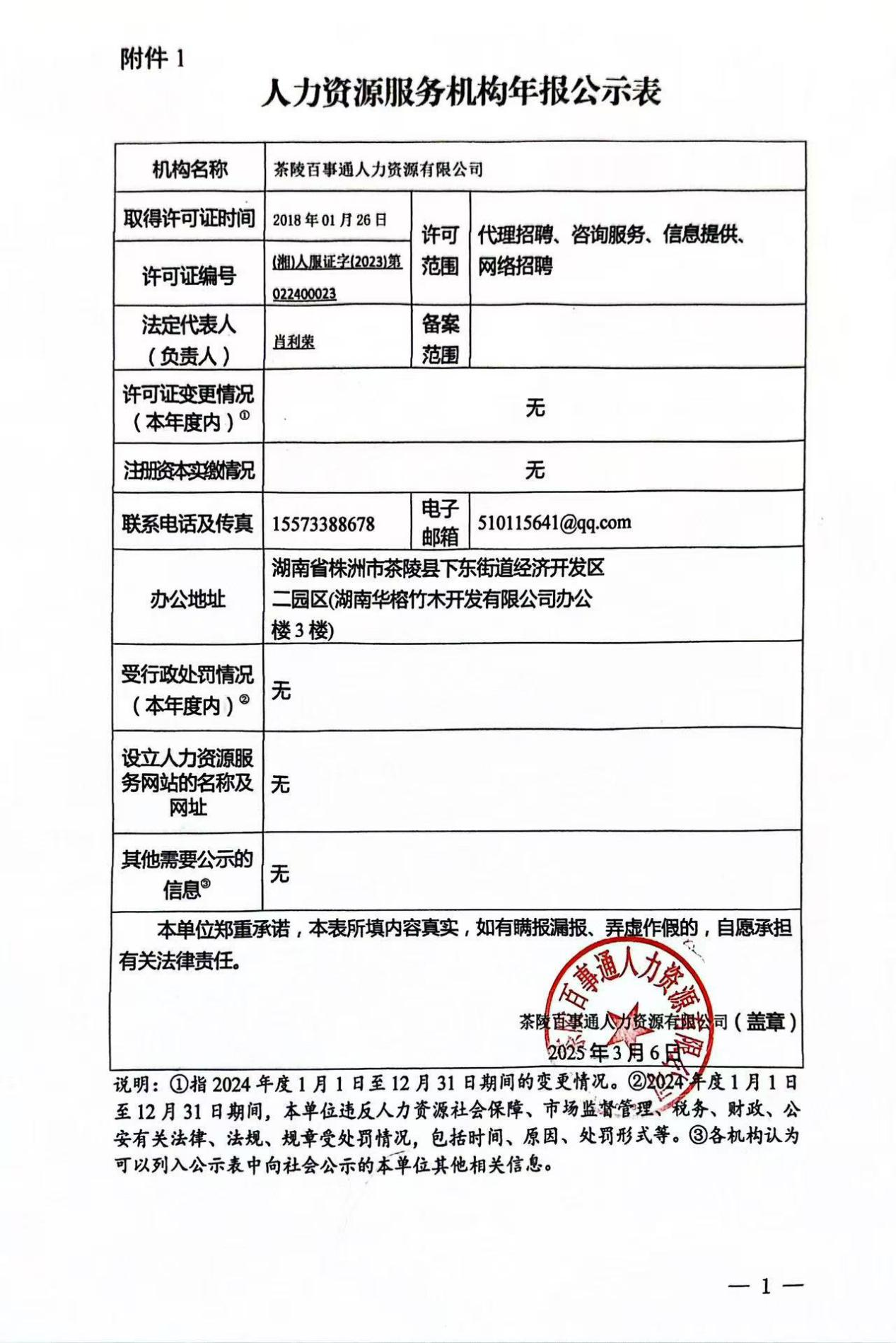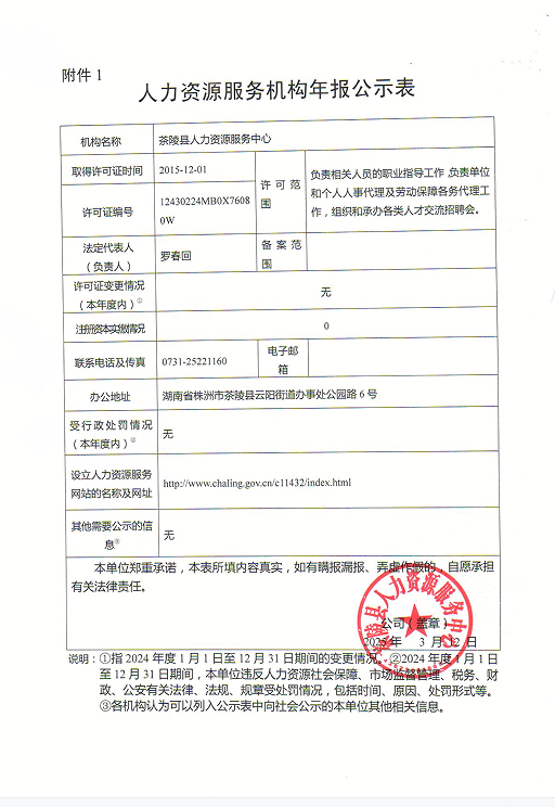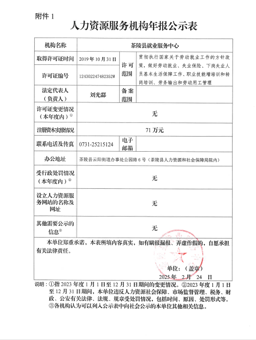 1、人力资源服务机构年报公示表(茶陵县人力资源服务中心)