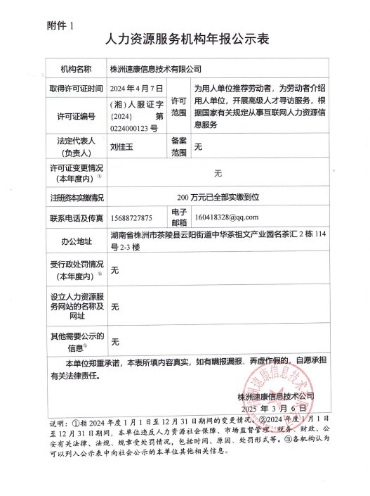 5、人力资源服务机构年报公示表(株洲速康信息技术有限公司)
