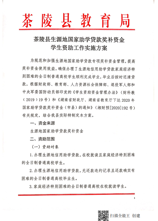 附件:茶陵县2020年国家助学贷款奖补资金学生资助工作实施方案